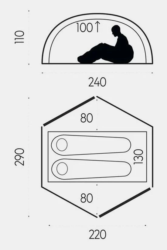 | Binnentent afmetingen (l x h x b) | 220 – 100 – 130 |